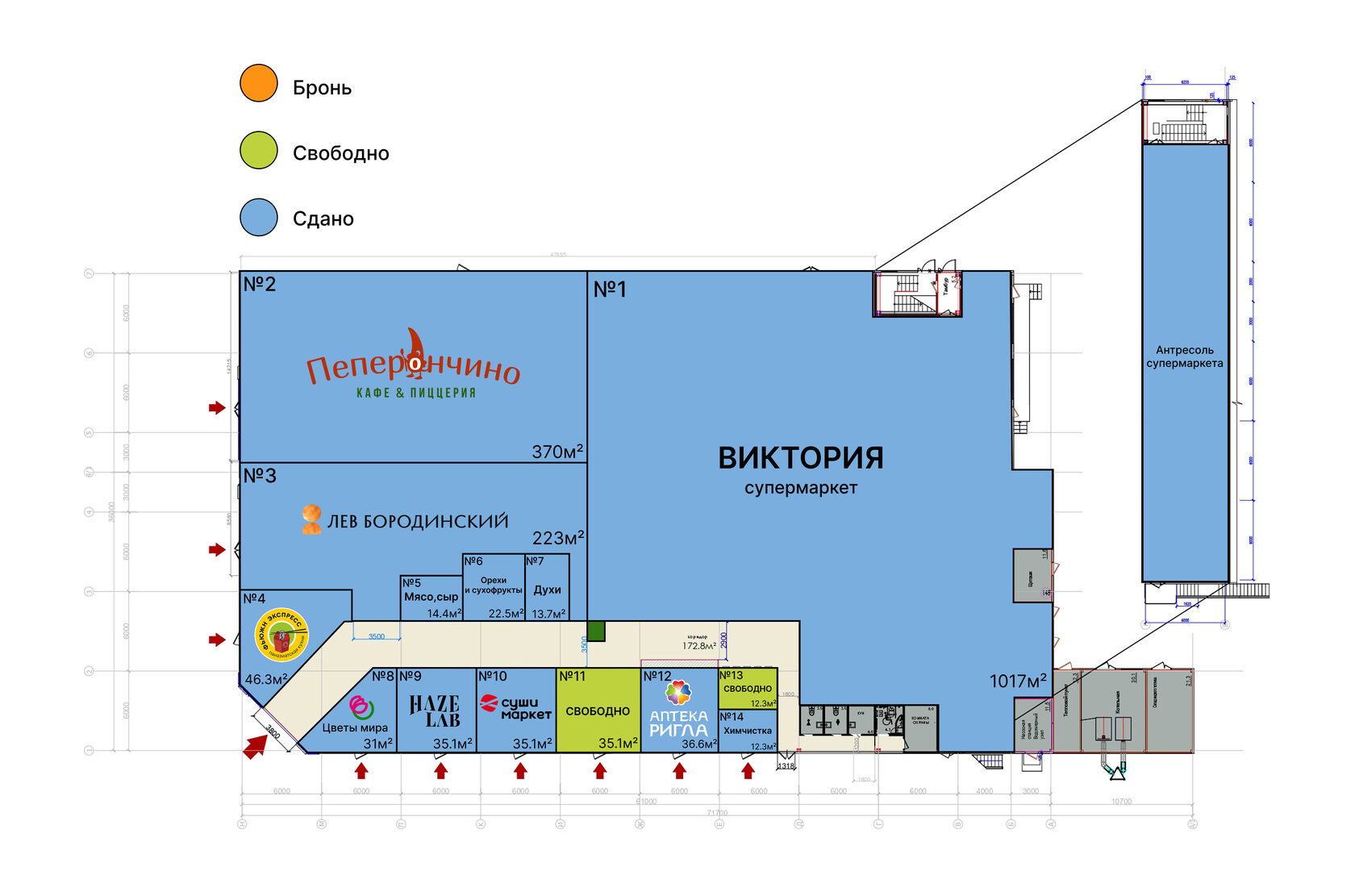 Локация торгового центра в спальном районе среди массивной жилой застройки предоставляет арендаторам несколько значительных преимуществ. Отсутствие серьезной конкуренции открывает двери для вашего бизнеса на пути к доминирующей позиции на рынке и привлечению большего количества клиентов. Интенсивное движение как автомобилей, так и пешеходов обеспечивает постоянный поток покупателей, что способствует увеличению продаж и доходов.