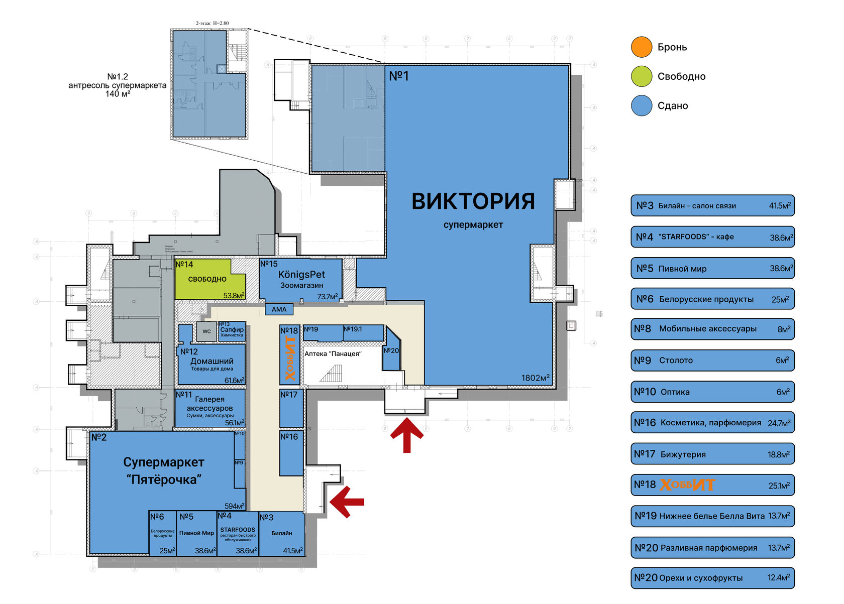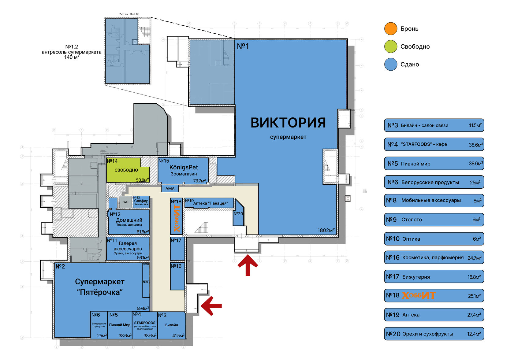 Торговый центр с супермаркетом "Виктория" в роли якорного арендатора стратегически ориентирован на удовлетворение повседневных потребностей местных жителей.