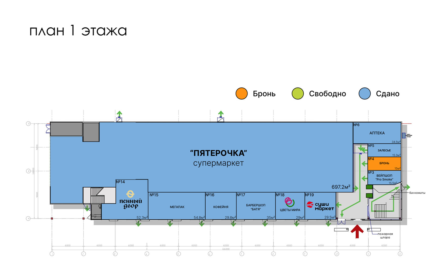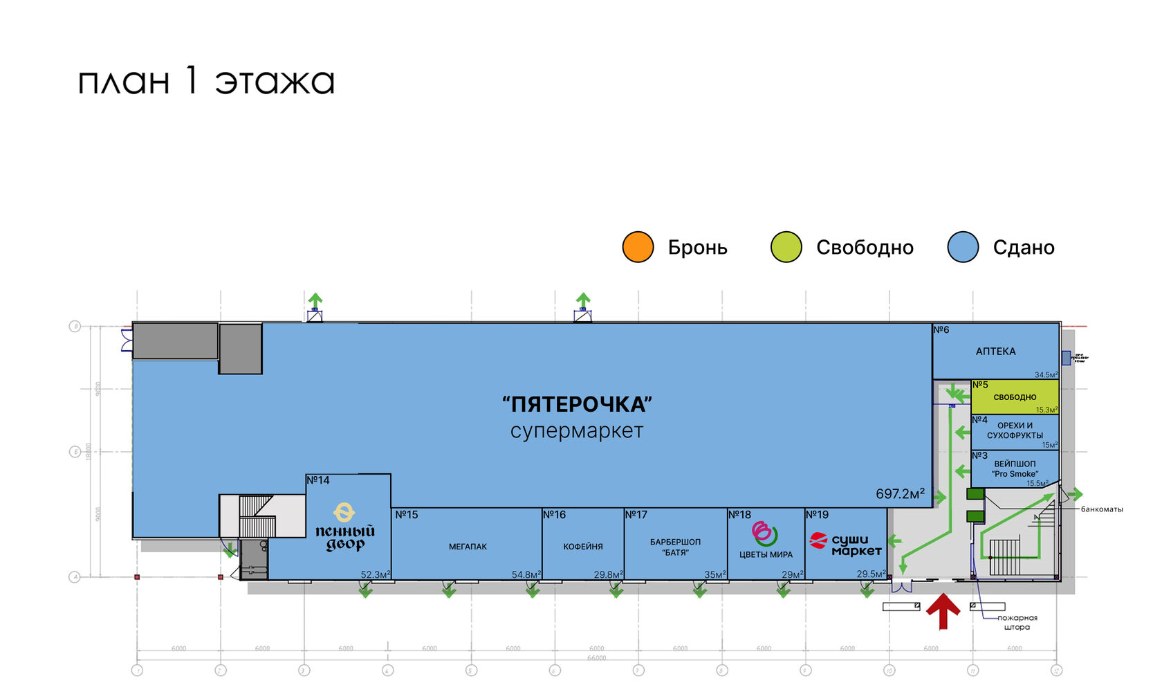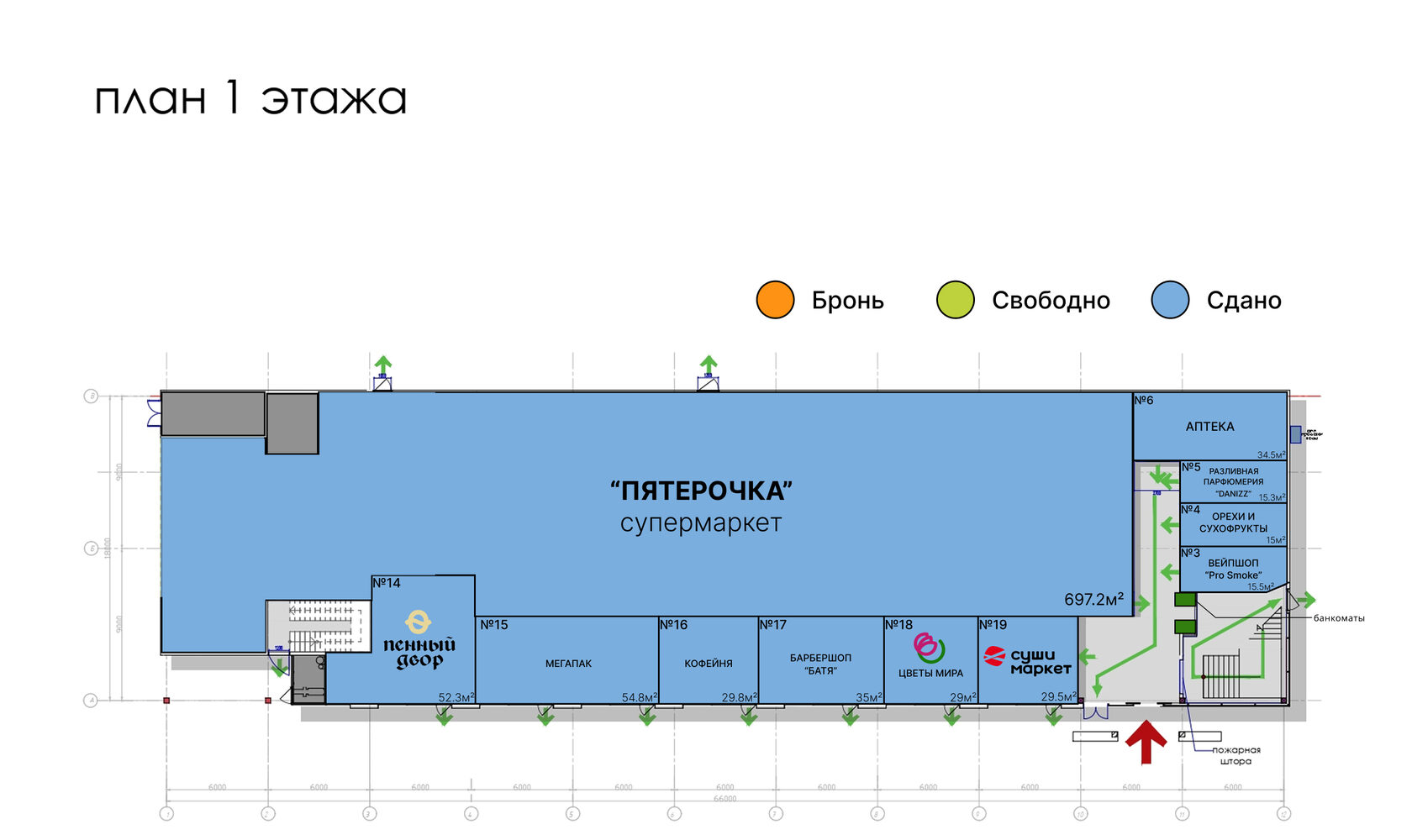 Важным преимуществом является низкая конкуренция в данном районе, что способствует созданию благоприятных условий для арендаторов и обеспечивает стабильный поток клиентов. Присутствие парковки делает торговый центр еще более удобным для посетителей, особенно для тех, кто предпочитает приезжать на автомобилях, что повышает привлекательность данного места для арендаторов и обеспечивает дополнительный комфорт для посетителей.